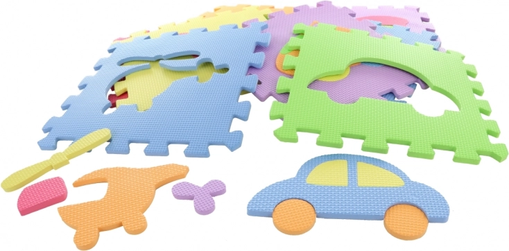 Ten zestaw kolorowych piankowych puzzli zapewnia dzieciom nie tylko wygodną i bezpieczną matę, ale także angażującą formę nauki. Wyjmowane kształty (pojazdy i inne przedmioty) wspierają małą motorykę, rozpoznawanie kształtów i kolorów oraz rozwój wyobraźni podczas układania.