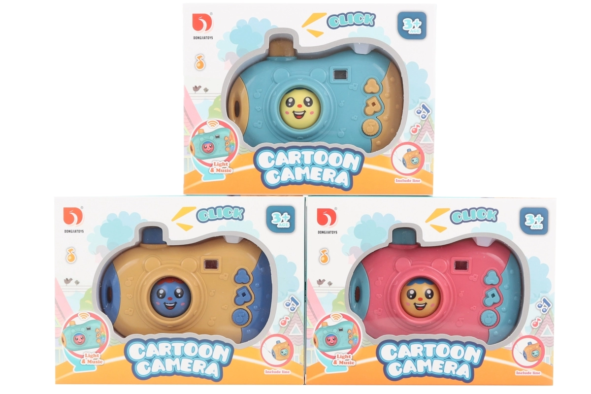 Zabawny plastikowy aparat dla najmłodszych oferuje efekty świetlne i dźwięki, które zachwycą dzieci. Łatwa obsługa i wytrzymałe wykonanie czynią go idealną zabawką dla dzieci od 3 lat. Zasilanie zapewniają 2× baterie AAA (brak w zestawie).