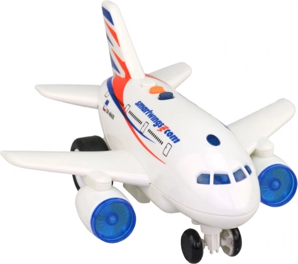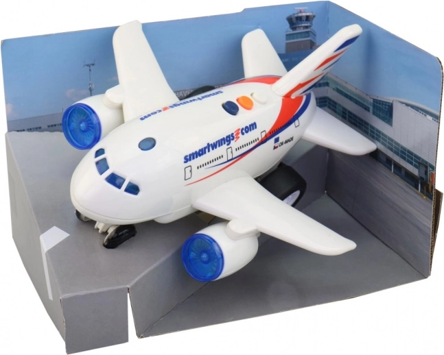 Dziecięcy samolot Smartwings z komunikatem, efektami świetlnymi i kołem zamachowym. Zasilanie 3x AG13 baterie.