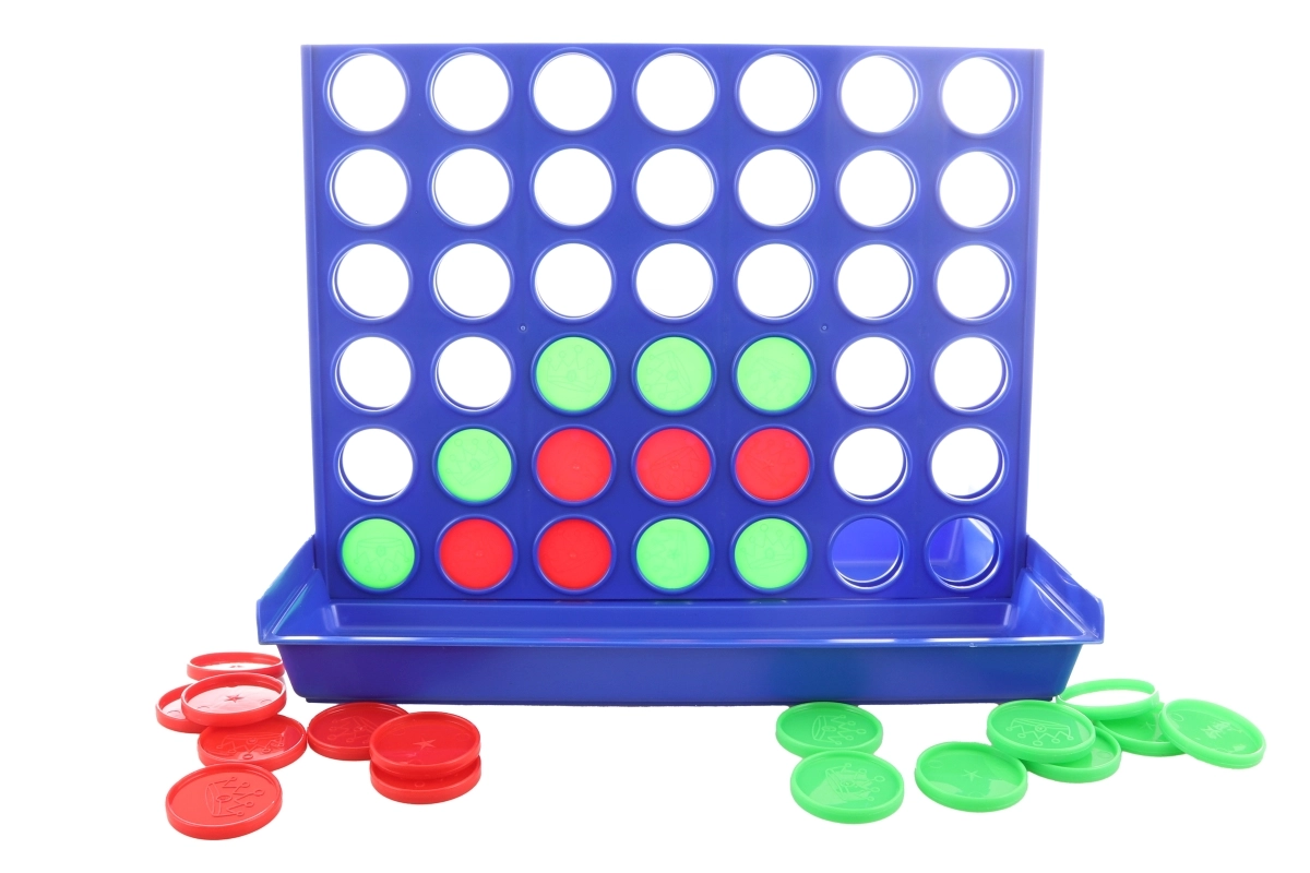 - Umieścić cztery żetony w rzędzie (poziomo, pionowo lub na skos)