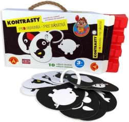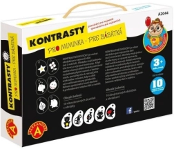 Zestaw Alexander Kontrasty oferuje prostą i skuteczną stymulację wzrokową dla najmłodszych. Około 3. miesiąca życia niemowlęta najlepiej odbierają wysoki kontrast i ostre linie, które wspierają rozwój ostrości wzroku oraz koncentracji. Solidne karty z wyrazistymi motywami (kształty, zwierzątka, symbole) przyciągają uwagę i wspierają pierwsze śledzenie wzrokiem.