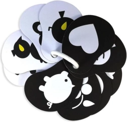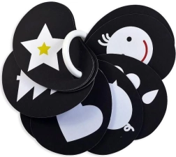 Czarno-białe motywy z wyraźnymi konturami pomagają niemowlętom lepiej ogniskować wzrok i rozwijać percepcję wizualną już od 3 miesięcy.