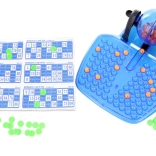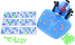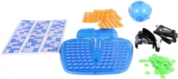 Zawiera planszę, kulę losującą, 90 ponumerowanych piłeczek i 48 kart do gry.