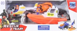 Odkryj ekscytujący świat ratownictwa z naszą zestawem ratowników, który zawiera motorówkę, helikopter, dmuchany ponton i 4 figurki ratowników.