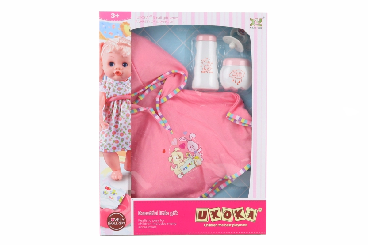 Rozszerz zabawę z lalkami o praktyczne i urocze akcesoria. Ten zestaw dla lalki 45 cm zawiera materiałowe ponczo, plastowy smoczek oraz dwie plastikowe buteleczki na kosmetyki. Idealny dla dzieci od 3 lat, wspiera wyobraźnię i umiejętności opiekuńcze.