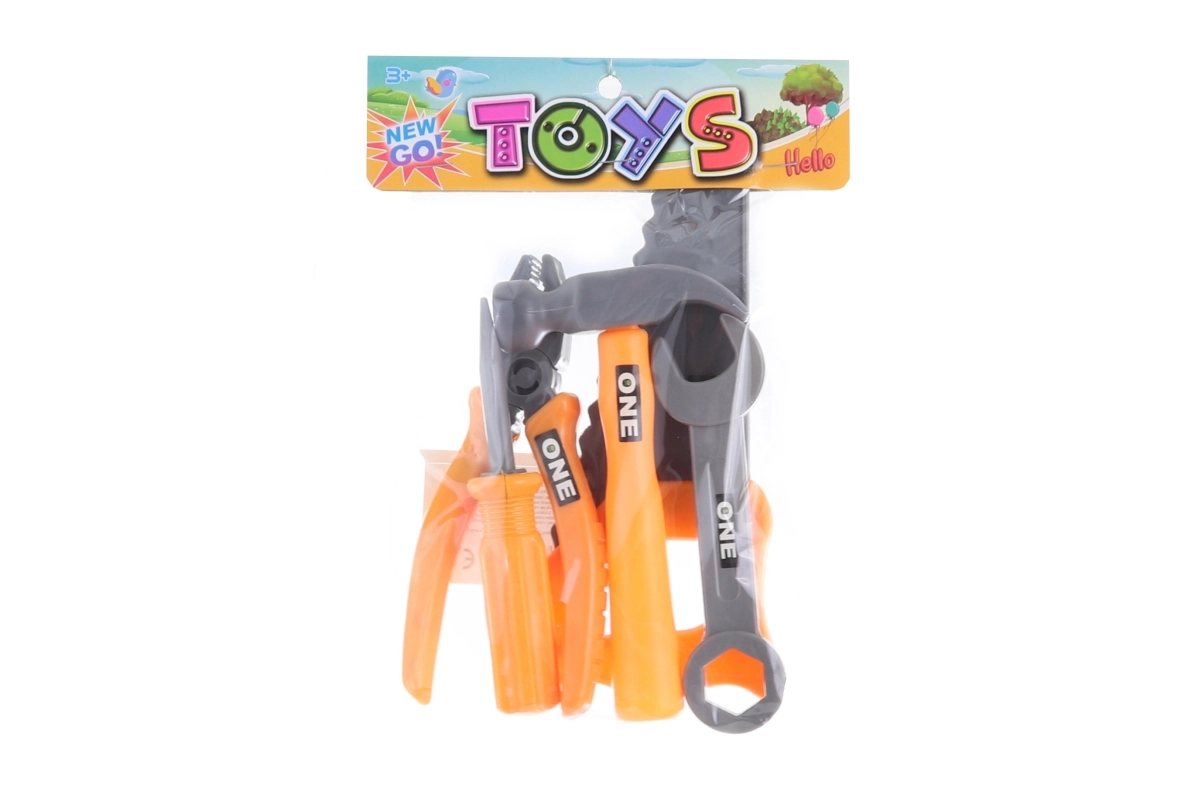 Zabawny dziecięcy zestaw narzędzi dla małych majsterkowiczów od 3 lat. Opakowanie zawiera podstawowe narzędzia do zabawy w naprawy: młotek, klucz, śrubokręt, szczypce i piłkę. Kompaktowe opakowanie w woreczku jest idealne w podróży i w domu.