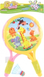 Ten kolorowy zestaw gier z paletkami ucieszy każde dziecko. Dzięki lekkim materiałom jest łatwy w obsłudze, a zabawę docenią zarówno początkujący, jak i bardziej zaawansowani mali gracze. Motywy zwierząt na paletkach nadają grze figlarny wygląd i motywują dzieci do aktywności.