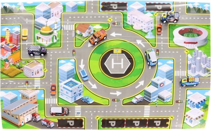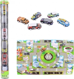 Odkryj świat drogowych przygód z zestawem łączącym trwałe metalowe autka i praktyczny dywanik do zabawy. Dzieci rozwijają wyobraźnię, motorykę małą i koordynację, bawiąc się we własnym miasteczku.