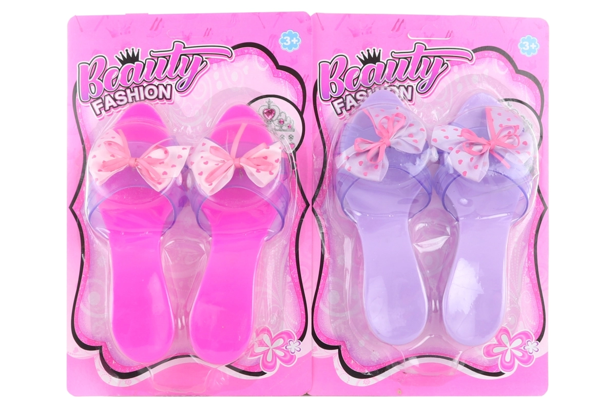 Urocze plastikowe pantofelki z elegancką kokardką zachwycą każdą małą elegantkę. Są lekkie, łatwe do zakładania i świetnie sprawdzą się do zabaw w księżniczki lub przebrania. Pantofelki z kokardką, wygodne do dziecięcej zabawy, idealny dodatek do dziecięcej garderoby.