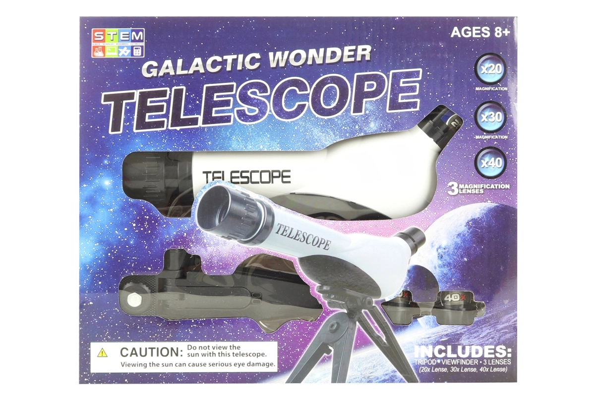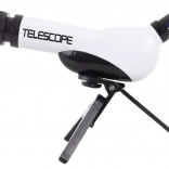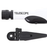 Odkryj nocne niebo z tym plastowym teleskopem dla dzieci ze stojakiem, oferującym średnicę obiektywu 60 mm, powiększenia 20×, 30× i 40× oraz łatwe ustawianie ostrości przy ogniskowej 170 mm. Idealny dla początkujących miłośników astronomii od 8 lat.