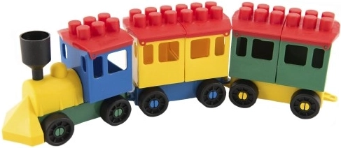- Plastikowe klocki – pociąg z 2 wagonikami