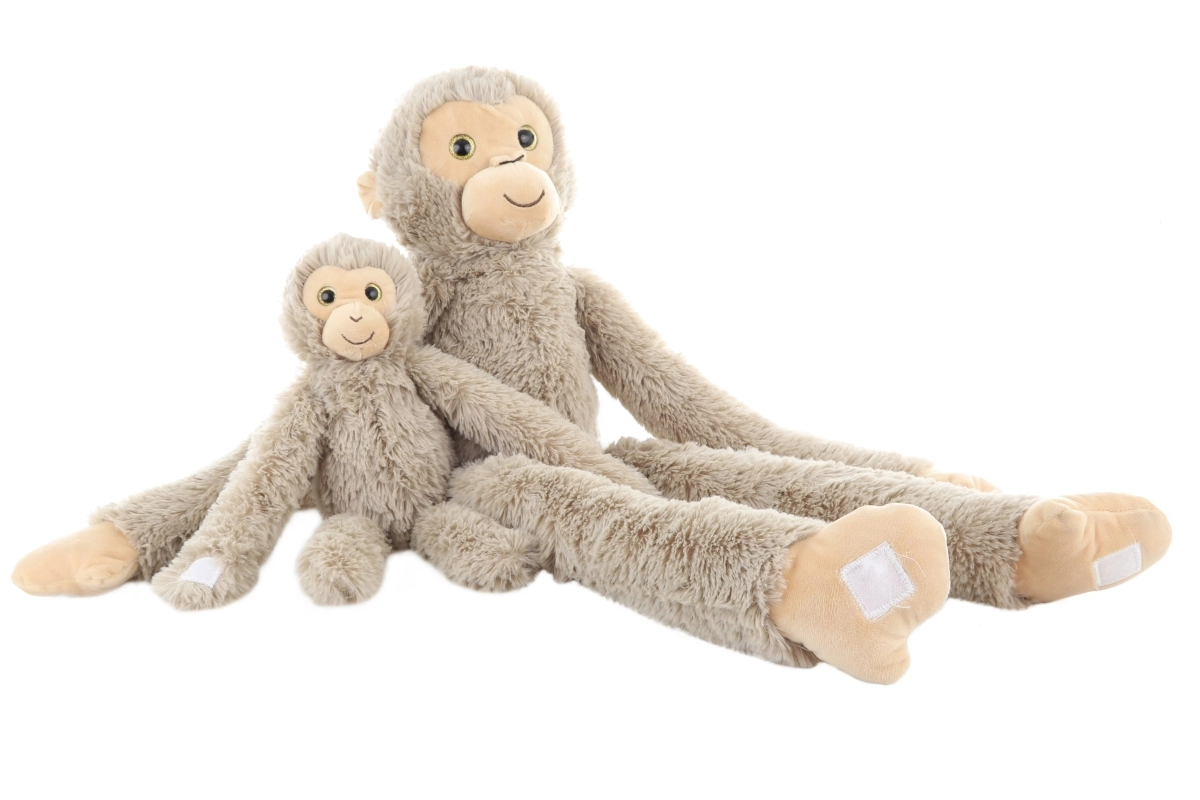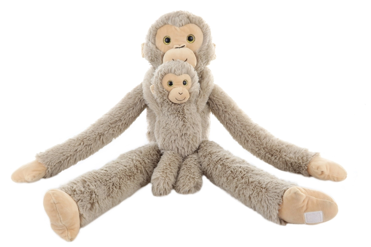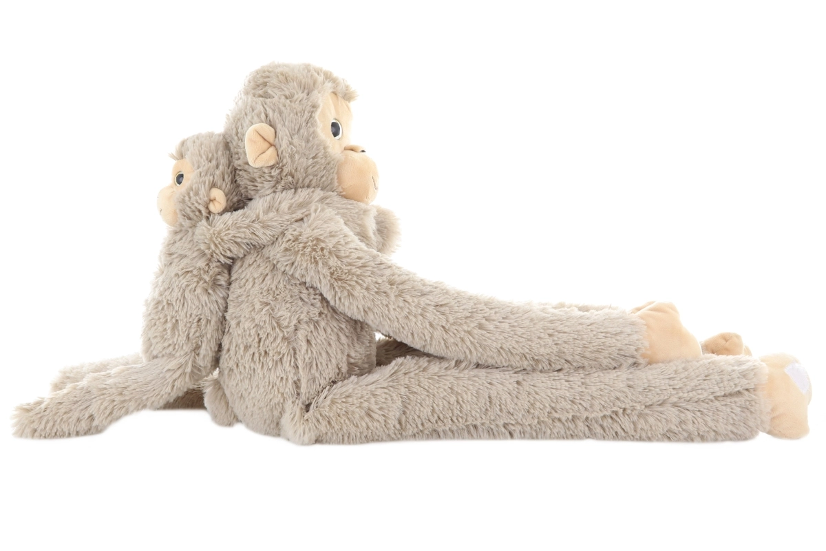 Ta miękka pluszowa małpa z młodym podbije serca wszystkich małych miłośników zwierząt. Długie, elastyczne ręce z rzepem pozwalają przytulić małpę do dziecka lub ją zawiesić, a odłączane młode rozwija zabawę w odgrywanie ról i motorykę małą.