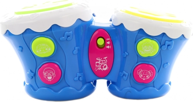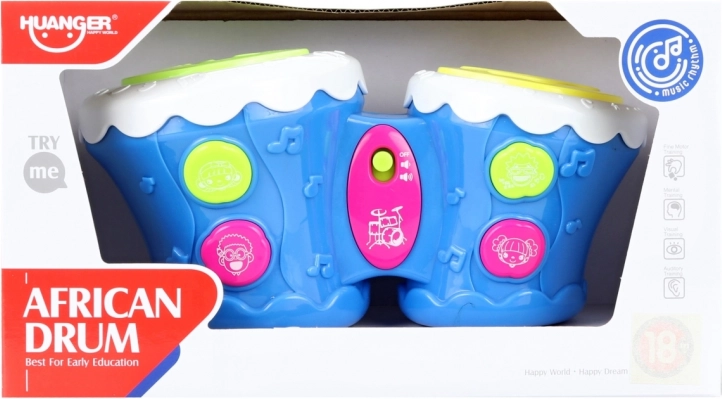 Niebieskie elektroniczne bębenki HUANGER inspirują małych muzyków do odkrywania świata muzyki. Dwa dotykowe bębny, kolorowe przyciski i migające światełka towarzyszą wesołym melodiom i rytmom, wspierając rozwój dziecięcych umiejętności.