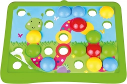 Zabawna mozaika z motywami natury dla najmłodszych dzieci wspiera małą motorykę, naukę kolorów i koordynację. Dzięki dużym kołeczkom i łatwo widocznym otworom dzieci od 2 lat szybko się z nią oswajają. W zestawie znajduje się 7 kolorowych szablonów i 36 kołeczków z wytrzymałego plastiku.