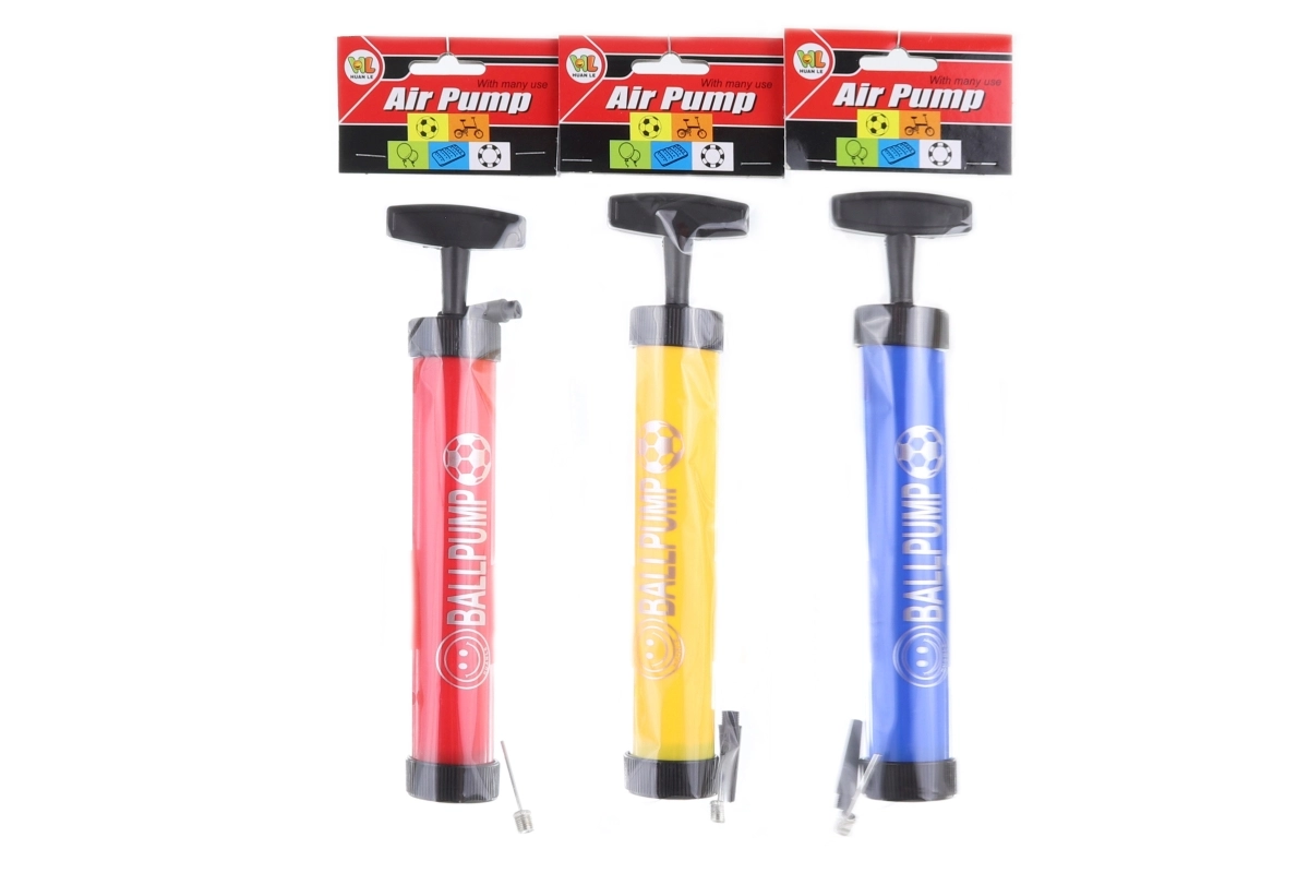Praktyczna ręczna pompka o długości ok. 24 cm do szybkiego i wygodnego pompowania sprzętu sportowego i rekreacyjnego. W zestawie znajdują się dwie końcówki do różnych zaworów. Lekka, poręczna i uniwersalna pomoc do domu, na sport i w podróż.