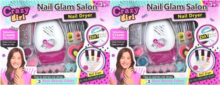 Dziecięce studio paznokci z suszarką to świetny zestaw dla małych stylistek. Zawiera wszystko, czego potrzeba do pierwszego manicure: suszarkę do paznokci na baterie, 3 kolorowe lakiery, pilnik, brokat i inne akcesoria. Idealny do kreatywnej zabawy i rozwijania wyobraźni. Wiek 3+.