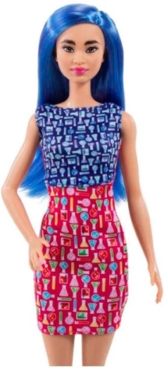 Długie niebieskie włosy i kolorowa sukienka nadają Barbie nowoczesny wygląd. To idealne połączenie dla wszystkich kreatywnych dzieci.