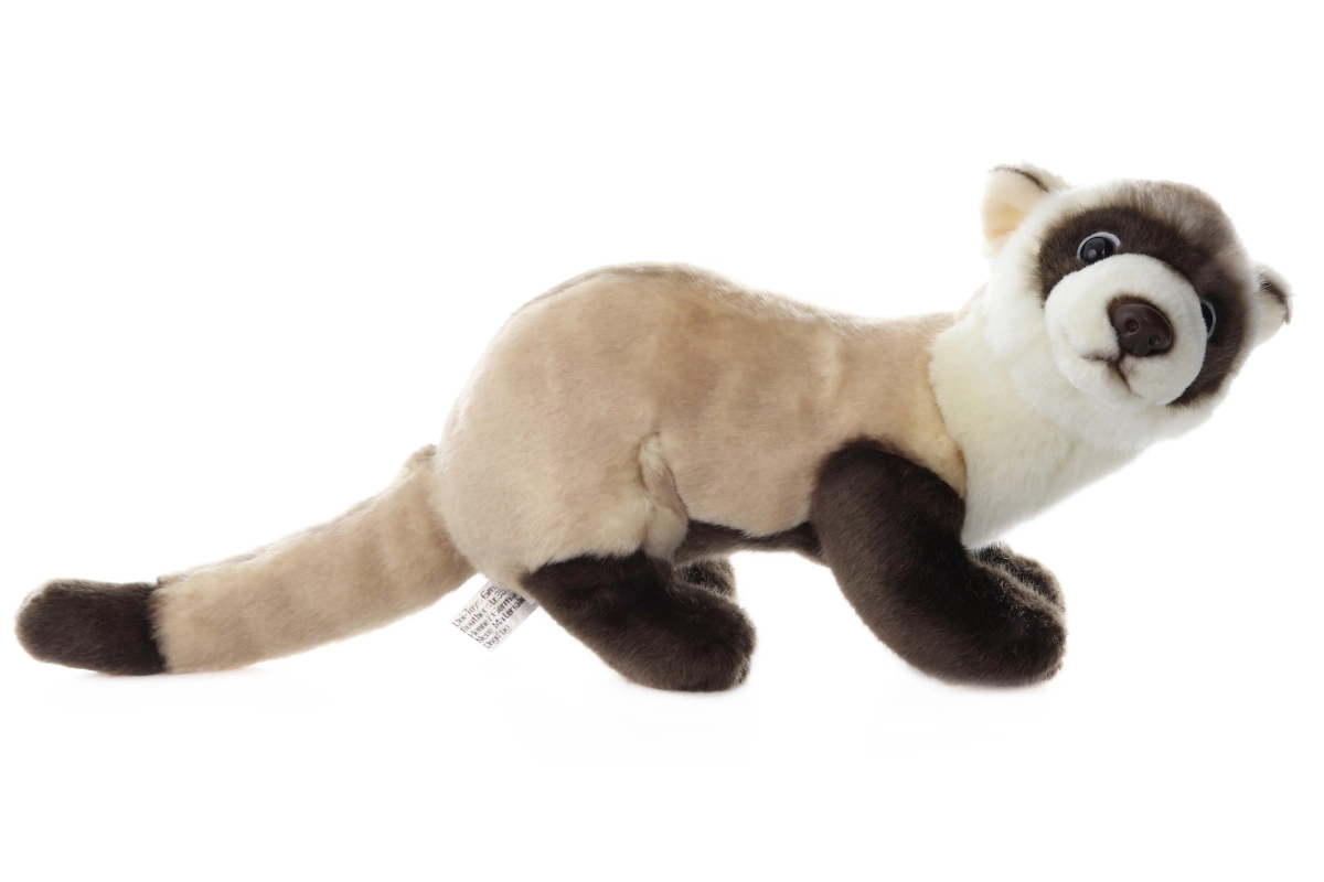 Pluszowa fretka o wymiarach ok. 23 × 8 × 14 cm (bez ogona). Długość ogona ok. 14 cm. Wiek 0+