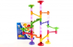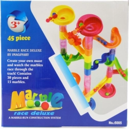 Zbuduj własne tory kulkowe z 45 elementów i obserwuj szybki wyścig kulek. Kolorowe plastikowe klocki dla dzieci 3+ rozwijają kreatywność, myślenie logiczne oraz koordynację ręka–oko i bawią 2–3 graczy.