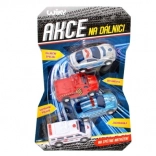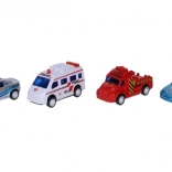 Zestaw czterech samochodzików z funkcją napędu wstecznego dla zabawy na 'autostradzie'. Długość każdego samochodzika to 7 cm. Idealny prezent dla małych entuzjastów samochodów i zabawy.