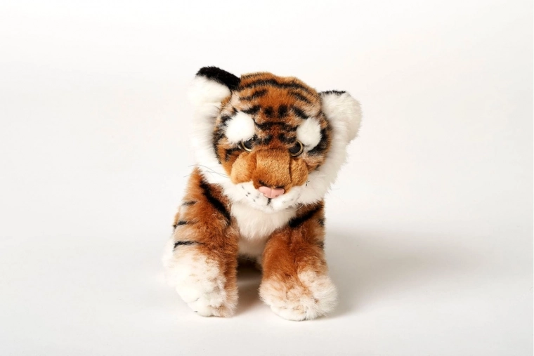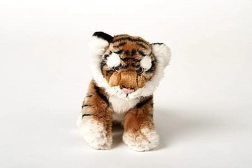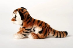 Pluszowy brązowy tygr o wymiarach ok. 25 × 19 × 11 cm (bez ogona). Długość ogona ok. 12 cm. Wiek 0+