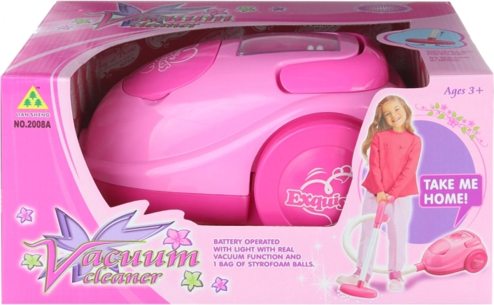 Zabawny różowy dziecięcy odkurzacz na baterie ucieszy małych pomocników przy sprzątaniu. Wydaje realistyczne dźwięki, naprawdę zasysa dołączone kuleczki i wspiera rozwój wyobraźni oraz motoryki. Idealna zabawka dla dzieci od 3 lat.