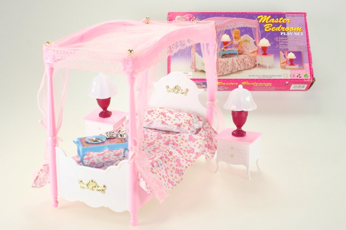 To dopracowane w szczegółach łóżko z baldachimem zamieni pokoik lalek w przytulne królestwo. Dzięki bogatym akcesoriom i funkcjonalnym lampkom dzieci stworzą wiele realistycznych scenek i będą się świetnie bawić. Wysokiej jakości plastikowe wykonanie zapewnia trwałość i łatwą pielęgnację.