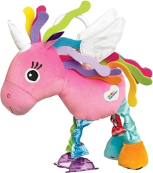 Uroczy jednorożec Tilly marki Lamaze to mięciutka, interaktywna zabawka dla najmłodszych, która wspiera wzrok, dotyk, motorykę oraz słuch. Łączy różne tekstury i kontrastowe wzory, wydaje dźwięki przy potrząsaniu i ma szeleszczące skrzydełka oraz łapki. Dzięki praktycznemu klipsowi łatwo przypniesz ją do wózka, fotelika samochodowego lub łóżeczka. Odpowiednia od urodzenia.