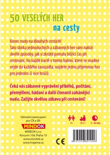 Ciesz się podróżą bez nudy dzięki kompaktowemu zestawowi „50 wesołych gier w podróży”. W opakowaniu znajdziesz karty z prostymi aktywnościami dla jednej lub wielu osób – idealne do samochodu, pociągu i samolotu. Szybka zabawa, łatwe zasady i mnóstwo wariantów sprawią, że czas w podróży minie jak z bicza strzelił.