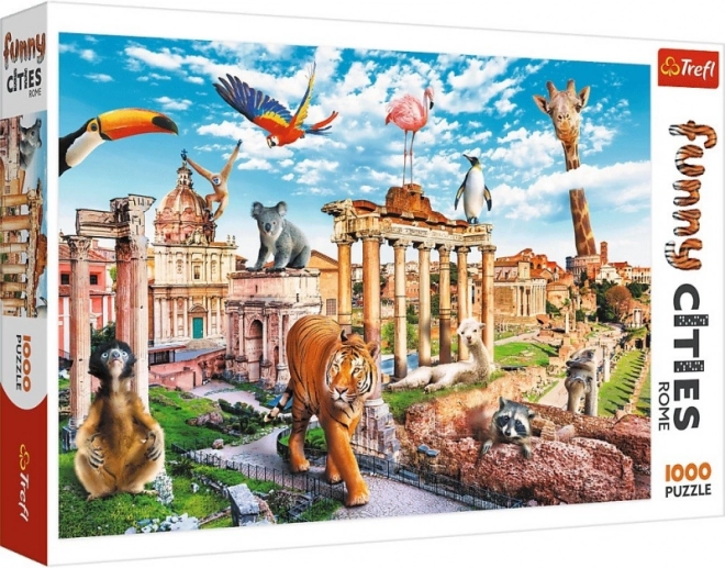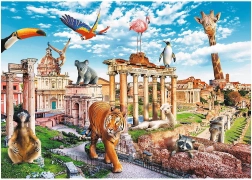 Oryginalna ilustracja łączy rzymskie zabytki i egzotyczne zwierzęta. Zabawny, pełen detali obraz przykuwa uwagę, a układanie spodoba się całej rodzinie.