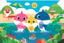- Motyw: rodzinka rekinów na wakacjach (Baby Shark)