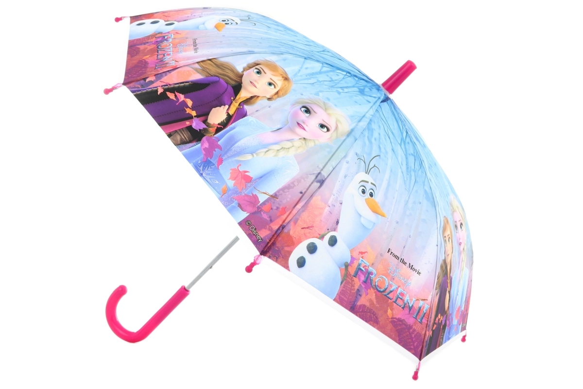 Ręczna parasolka z motywami Frozen. Wymiary rozłożonej parasolki ok. 64 x 64 x 60 cm. Wymiary opakowania ok. 60 x 8,5 x 4 cm. Pakowana w foliowy woreczek.