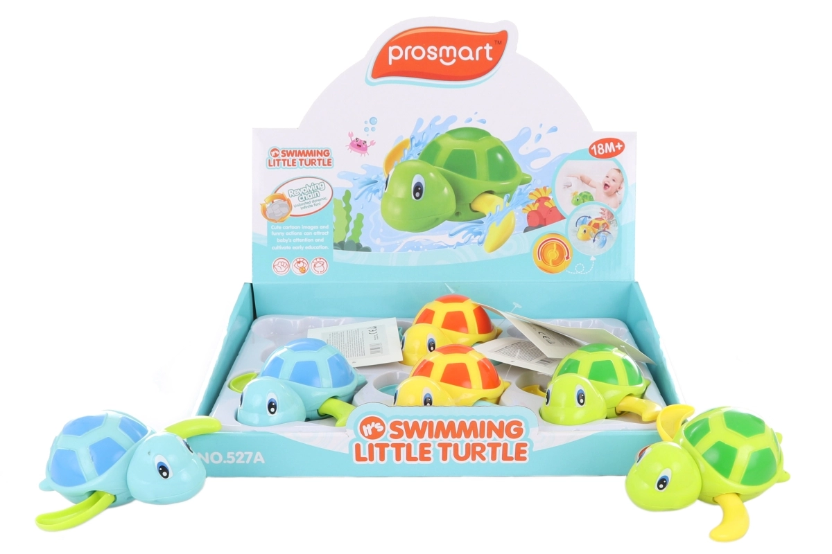 Ta urocza pływająca żółwiczka to idealna zabawka do wanny i małego baseniku. Dzięki prostemu mechanizmowi nakręcania po włożeniu do wody sama się porusza i wiernie naśladuje pływanie. Dzieci mają mnóstwo zabawy, a przy tym rozwijają małą motorykę i pozytywny stosunek do wody.
