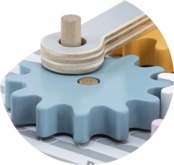 Dzieci mogą ćwiczyć koordynację oraz logiczne myślenie dzięki zabawnym zębatym klockom, które wprawiają w ruch pozostałe elementy.