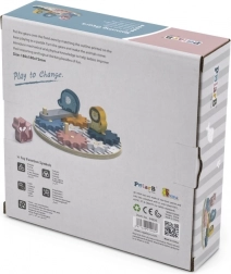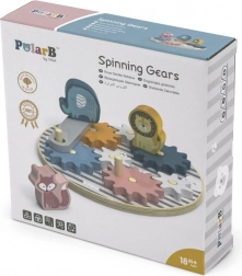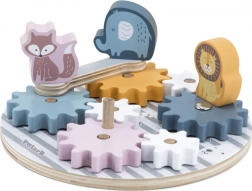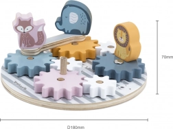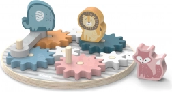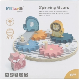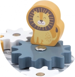 Wspieraj zabawę i rozwój z naszymi drewnianymi zębatymi klockami, gdzie mechanika staje się grą. Zestaw zawiera 7 kolorowych kół zębatych, 3 zabawne figurki zwierząt oraz podstawę, na której można umieszczać koła tak, aby jedno wprawiało w ruch pozostałe.