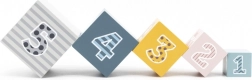 - Klocki mają na każdej stronie inne ilustracje: liczby (1 do 5), urocze zwierzątka z kolekcji PolarB oraz różne obrazki odpowiadające liczbie na klocku