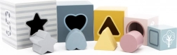 - 5 pudełek o różnych rozmiarach i 4 geometryczne klocki