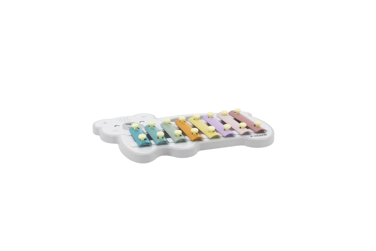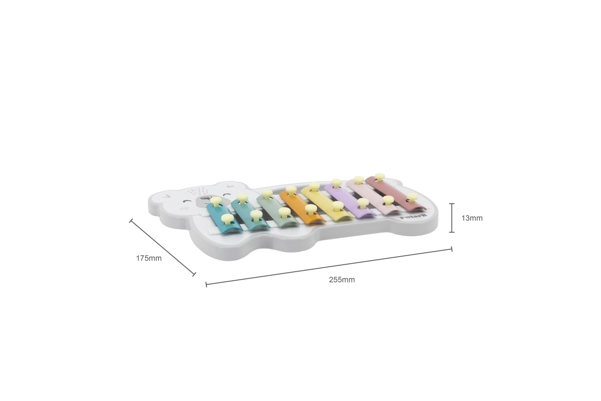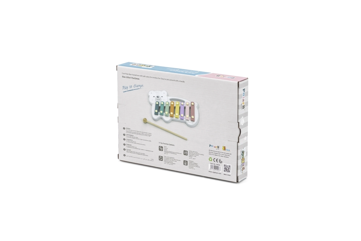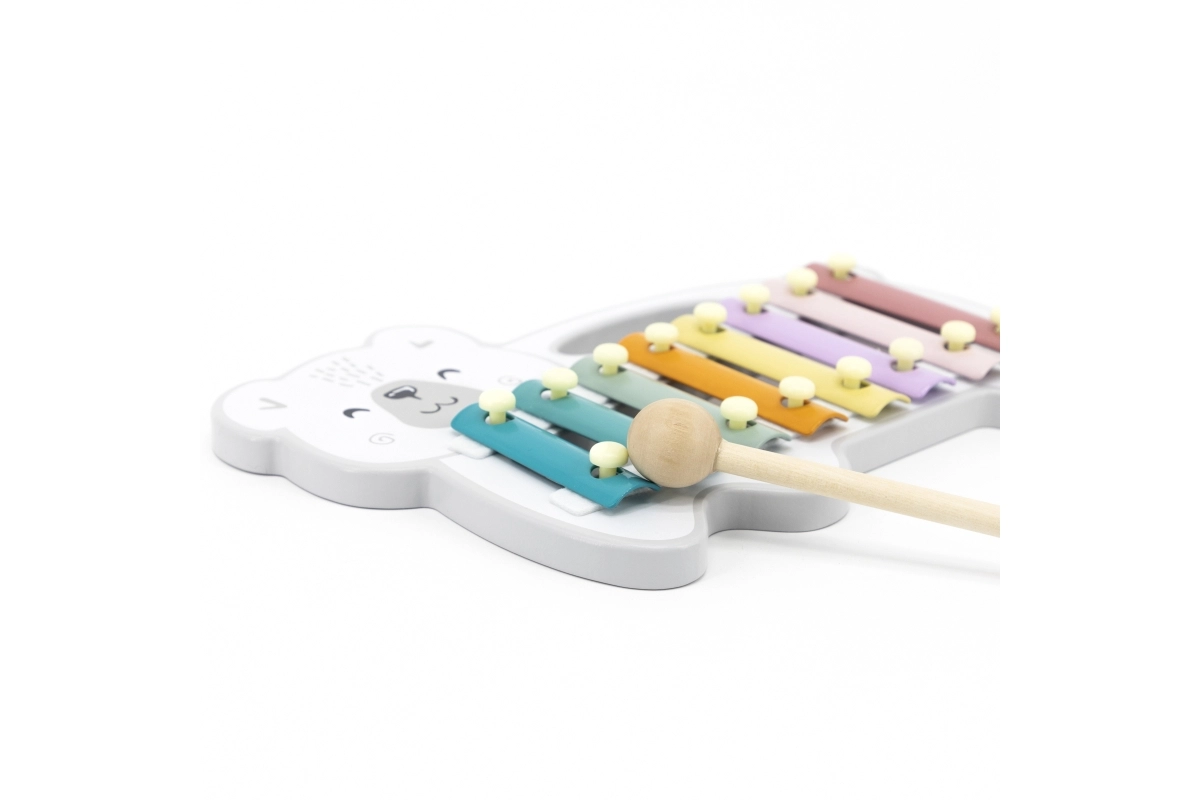 Rozbudź dziecięcą wyobraźnię z uroczym ksylofonem w kształcie niedźwiedzia polarnego. Ten wysokiej jakości instrument muzyczny z ośmioma kolorowymi klawiszami wspiera rozwój słuchu, małej motoryki i koordynacji ręka–oko. Kompaktowe i bezpieczne wykonanie jest idealne do pierwszych muzycznych odkryć dla dzieci od 18 miesięcy.