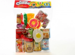 Zabawny zestaw dziecięcego jedzenia w woreczku dla małych kucharzy. Zawiera różne produkty z plastiku i papieru w praktycznym opakowaniu o wymiarach ok. 31 × 21 cm. Idealny do rozwijania wyobraźni, umiejętności społecznych oraz zabawy w sklep lub kuchnię. Bezpieczne wykonanie, łatwe przechowywanie i odpowiedni od 3 lat.