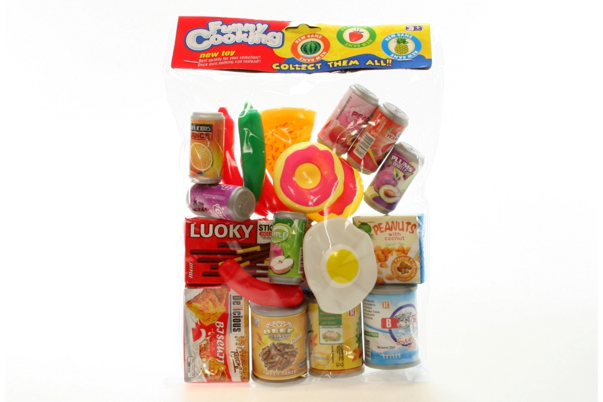 Ten zestaw jedzenia w woreczku to świetne uzupełnienie dziecięcej kuchni lub sklepu. Oferuje mieszankę realistycznie wyglądających produktów z plastiku i papieru, które pomagają dzieciom rozwijać wyobraźnię i uczyć się podstaw zdrowego odżywiania poprzez zabawę.