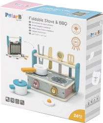Jedna zabawka, podwójna porcja zabawy. Składana konstrukcja pozwala łatwo zmieniać rolę kucharza i mistrza grilla oraz dopasować zestaw do każdego dziecięcego pokoju.