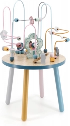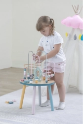 Labirynt z koralikami na solidnym drewnianym stoliku zachęca dzieci do odkrywania. Kolorowe kształty i urocze zwierzątka (miś, lis, jeż) motywują do ruchu paluszków, precyzyjnego chwytania i tworzenia własnych opowieści. Idealny wybór do domowego stylu „Montessori” nauki przez zabawę, który rozwija cierpliwość, koncentrację i wyobraźnię.