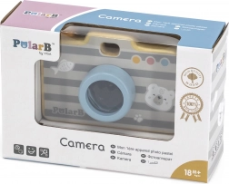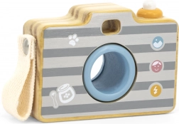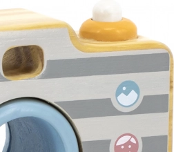 Zabawka wykonana jest z wysokiej jakości drewna i pokryta nietoksycznymi, bezpiecznymi dla dzieci farbami. Solidne wykonanie, gładkie krawędzie i boczny uchwyt zapewniają wygodne i bezpieczne użytkowanie. Aparat doskonale rozwija małą motorykę, koordynację oraz kreatywność podczas zabaw w odgrywanie ról.