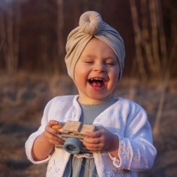 Stylowa drewniana zabawka, która łączy aparat i kalejdoskop w jednym. Bezpieczne, nietoksyczne farby, gładkie krawędzie i wysokiej jakości drewno zapewniają trwałość oraz wygodny chwyt. Wspiera wyobraźnię, małą motorykę i koordynację oko–ręka – wystarczy powiedzieć „ser!” i zaczyna się świat zabawy w fotografowanie.