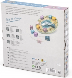 Drewniany zegar dla dzieci POLARB łączy sorter kształtów, układanie liczb i nawlekanie w jednej wszechstronnej, edukacyjnej zabawce. Dwanaście ponumerowanych elementów w kształcie figur geometrycznych wkłada się w odpowiadające im wycięcia na tarczy, a ruchome wskazówki uczą dzieci rozumienia godzin. Każdy element ma otwór do łatwego przewlekania sznurkiem, co naturalnie rozwija małą motorykę i koncentrację.