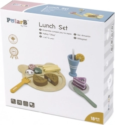 Drewniany zestaw obiadowy POLARB od VIGA jest gotowy do serwowania pyszności ze stylem. Na talerzyku dzieci mogą ułożyć stek, frytki, warzywa i deser, a wszystko „popić” napojem ze słomką. Realistyczne dodatki zachęcają do naśladowania dorosłych oraz rozwijają samodzielność i słownictwo.