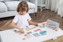 Każdy wagonik kolejki ma liczbę i zwierzątko, które dzieci łatwo dopasowują, ćwicząc liczenie i rozpoznawanie.