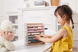 Kolorowe koraliki i przekręcane kostki z cyframi motywują dzieci do odkrywania podstaw matematyki w naturalny i angażujący sposób.