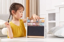 Dzięki kompaktowym wymiarom idealnie nadaje się na biurko w pokoju dziecięcym lub do kącika zabaw. Wysokiej jakości drewniane wykonanie zapewnia stabilność i trwałość, a delikatne kolory sprzyjają koncentracji i radości z odkrywania.