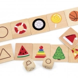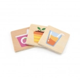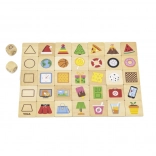 Drewniana edukacyjna układanka VIGA to zabawka ukierunkowana na rozwój zdolności poznawczych i motorycznych dzieci. Ta wysokiej jakości układanka wykonana jest z naturalnego drewna i malowana nietoksycznymi farbami, co zapewnia bezpieczeństwo Twojemu dziecku. Zestaw zawiera różne kształty, które dzieci dopasowują do codziennych przedmiotów, takich jak doniczka (trapez) czy kawałek pizzy (trójkąt).